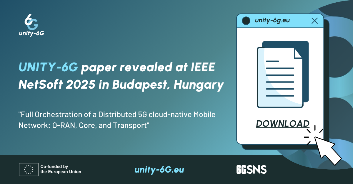 UNITY-6G partners Jorge Baranda (CTTC), Javier Velázquez Martínez (TID), Albert Bel (CTTC), David Gregoratti (SRS), Luis M. Contreras (TID), Josep Mangues-Bafalluy (CTTC) unveiled their recent paper “Full Orchestration of a Distributed 5G cloud-native Mobile Network: O-RAN, Core, and Transport” at the 11th IEEE International Conference on Network Softwarization (IEEE NetSoft 2025) held on June 23–27 2025, in Budapest, Hungary.