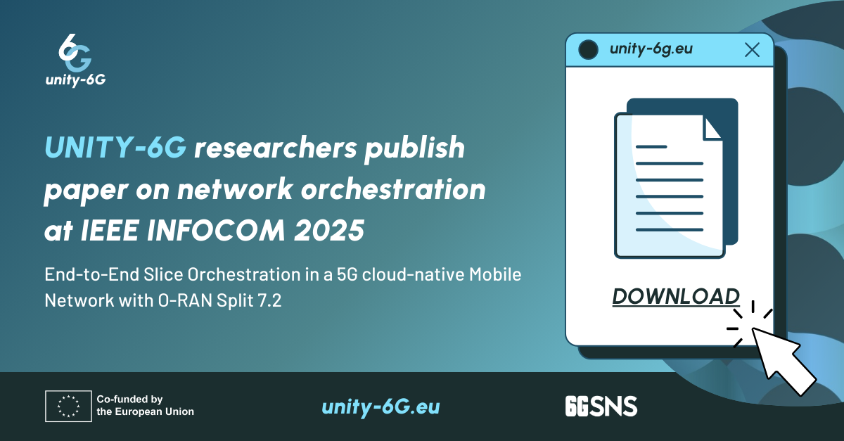 UNITY-6G partners Jorge Baranda, Albert Bel, Sergio Barrachina-Muñóz, Miquel Payaró, and Josep Mangues-Bafalluy have published a research paper at IEEE INFOCOM 2025, held from May 19–22 in London, UK. The paper, titled “End-to-End Slice Orchestration in a 5G Cloud-Native Mobile Network with O-RAN Split 7.2,” presents an innovative approach to flexible and disaggregated network deployments using open-source software and commercial equipment.